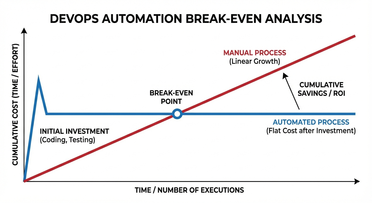 Traditionally, we looked at automation through a strictly mathematical lens. You pay an upfront "development cost" to write the script, with the hope that the time saved over the long run eventually pays back that debt.